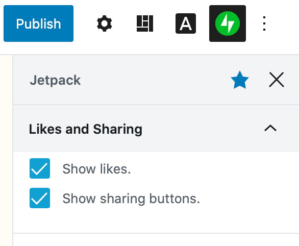 Click the Jetpack icon (small green circle) in the top right of the screen when in editing mode. Then uncheck Show Likes and Show sharing buttons. Then click Publish and/or Update.